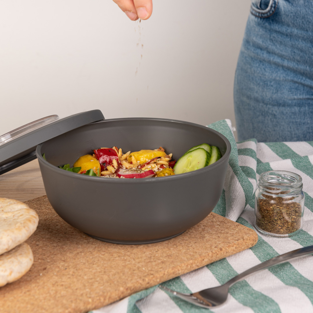 The airtight lid ensures your ingredients stay fresher for longer, making this bowl an excellent companion for transporting food. Both the bowl and lid are dishwasher, fridge, and freezer safe, offering maximum convenience. Additionally, the bowl is microwave-safe without the lid, adding to its versatility.