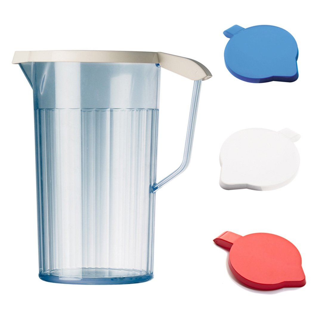 Introducing our 1.1 Litre Antibacterial Plastic Jug, now available with a choice of three vibrant coloured lids: red, blue, and white. This versatile jug is perfect for serving both chilled and hot drinks.