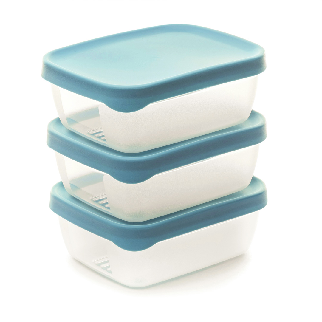 Introducing the Set of 3 OptiFridge 600ml Storage Containers – the perfect solution for storing meals, soups, liquids, or single ingredients like fruits and vegetables. Also, these containers make excellent lunch boxes. The set features clear containers with blue lids and a frosted matt finish on the sides.